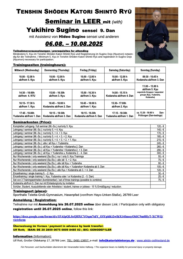 Join us for a seminar with Sensei Yukihiro Sugino (9th dan) and Hideo Sugino w Leer (Germany).